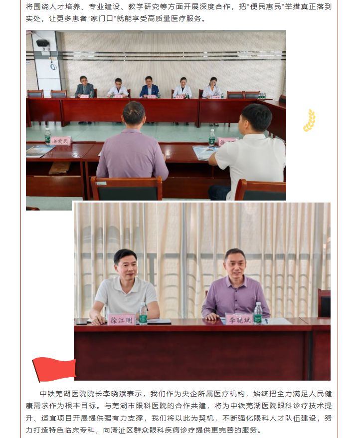 灣沚區(qū)眼科分級診療新發(fā)展——蕪湖市眼科醫(yī)院與通用環(huán)球中鐵蕪湖醫(yī)院合作共建 |